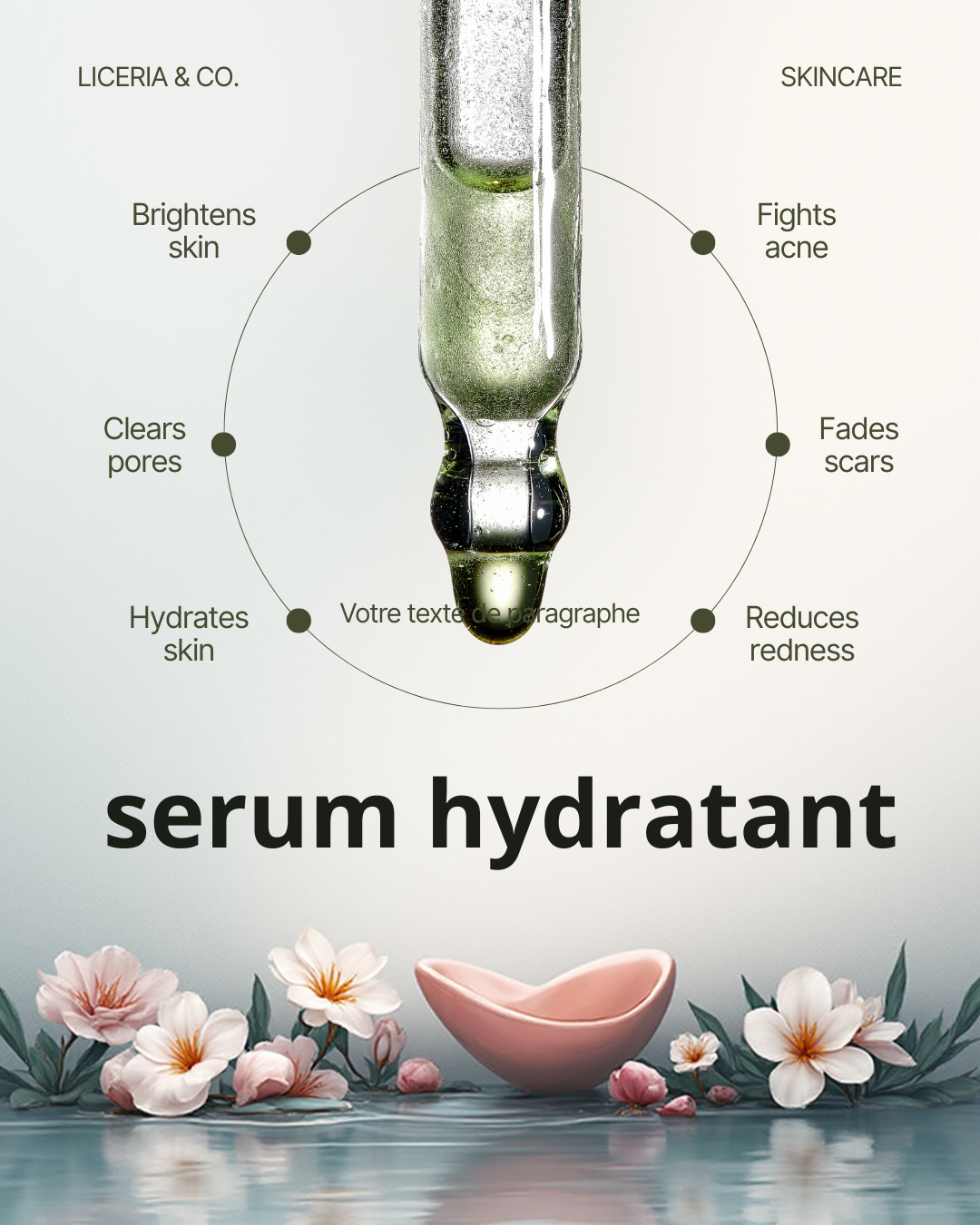 découvrez le secret d'une peau douce, lisse et lumineuse ce sérum hydratant est formulé avec des ingrédients naturels puissants comme l'acide hyluronique,l,alove vera et la vitamine E pour offrir a votre peau une hydratation intense et durable